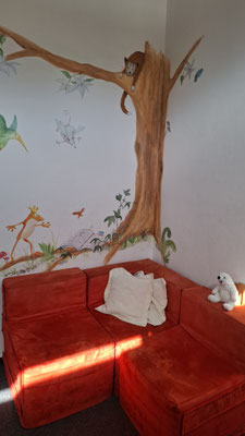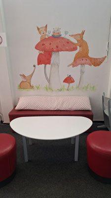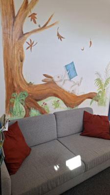 Vorraum ließen wir dann von der Künstlerin Kathrin Rosenberger aus Hamburg-Rissen gestalten. Nach unseren Wünschen bemalte sie die Wände mit Motiven aus dem Kinderbuch "Du bist mein